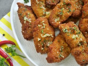 -Pour prepared garlic butter on fried chicken tenders generously.