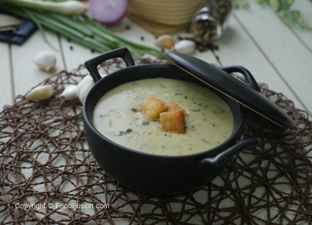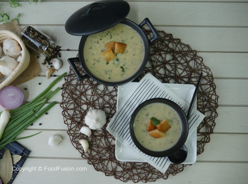 Fresh parsley/hara dhania aur bread croutons sa garnish ker ka serve karein!
