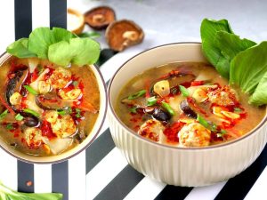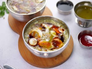In saucepan,add chicken,carrots,green onion,onion,bay leaf,black peppercorns,salt,vinegar and water,mix well and bring it to boil (remove scum),cover and cook on medium low flame for 20-25 minutes,stock is ready then strain & set aside.