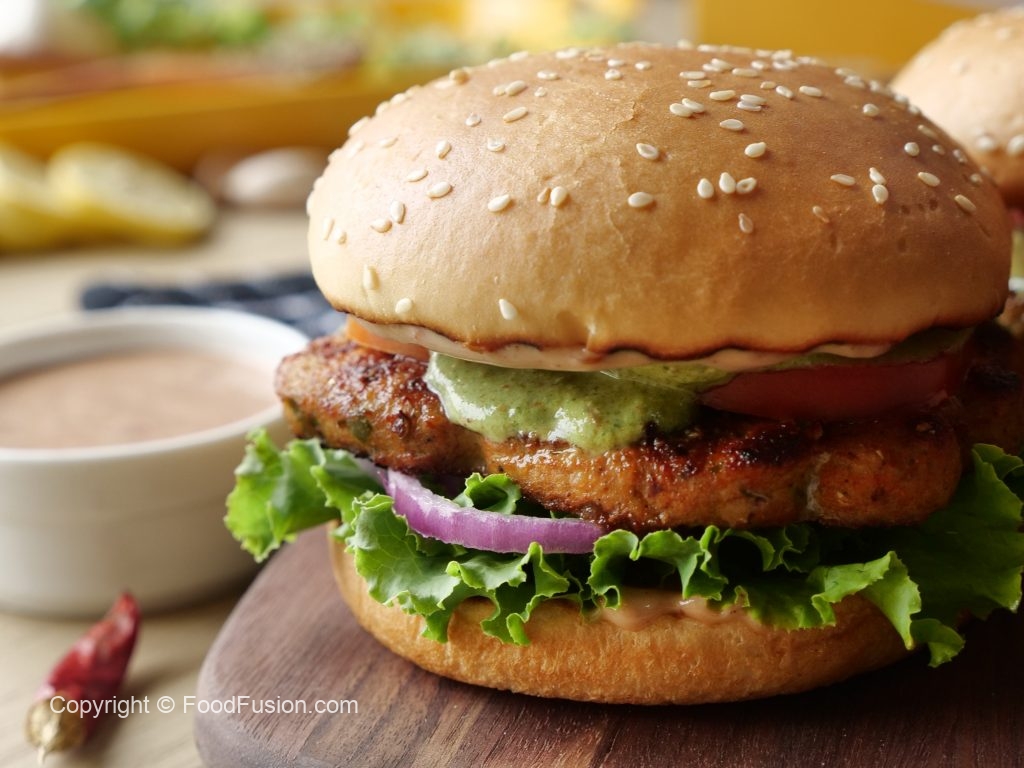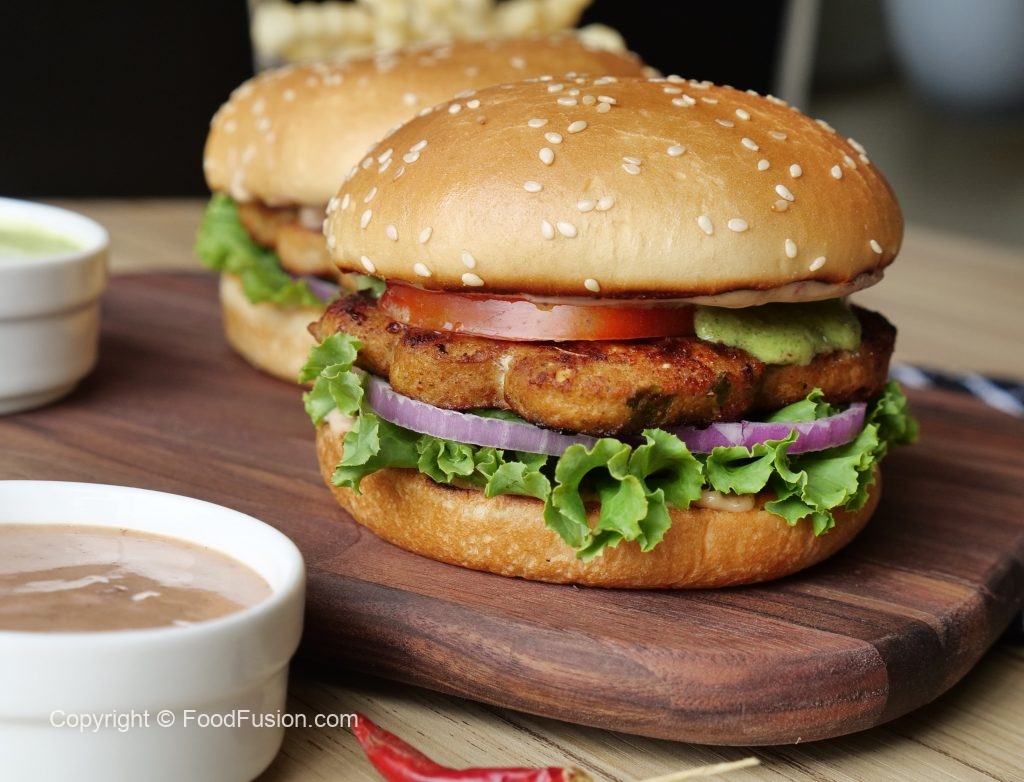 Serve with potato fries,prepared chatpati hari chutney & bbq burger sauce!