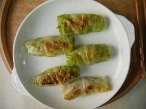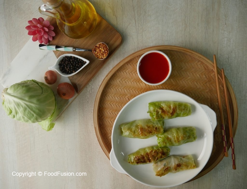 In frying pan,add olive oil and fry cabbage wraps from both sides until golden brown.