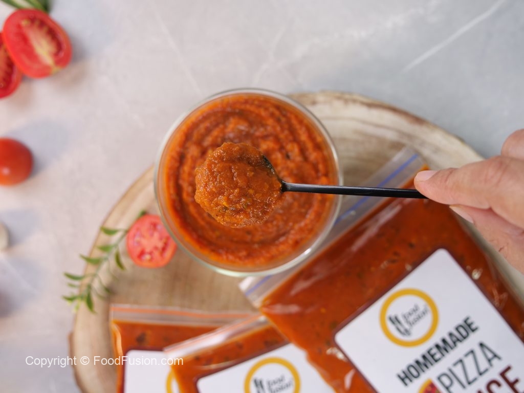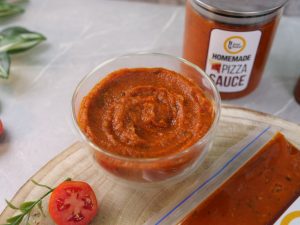 -Blended tomatoes,cheeni,dried oregano,lal mirch crushed,pink salt,lal mirch powder,sirka aur fresh basil leaves dal ker ache tarha mix karein aur tez ancch per 10-12 minutes kliya paka lein aur musalsal mix kertay rahein,partially cover karein aur halki ancch per 30-40 minutes kliya paka kein (mix in between).