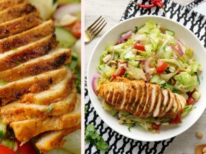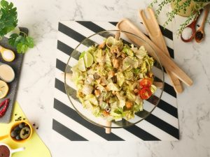 -Gradually add tahini paste,cooked chicken,olive oil,tahini paste & mix well.