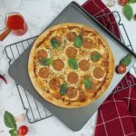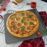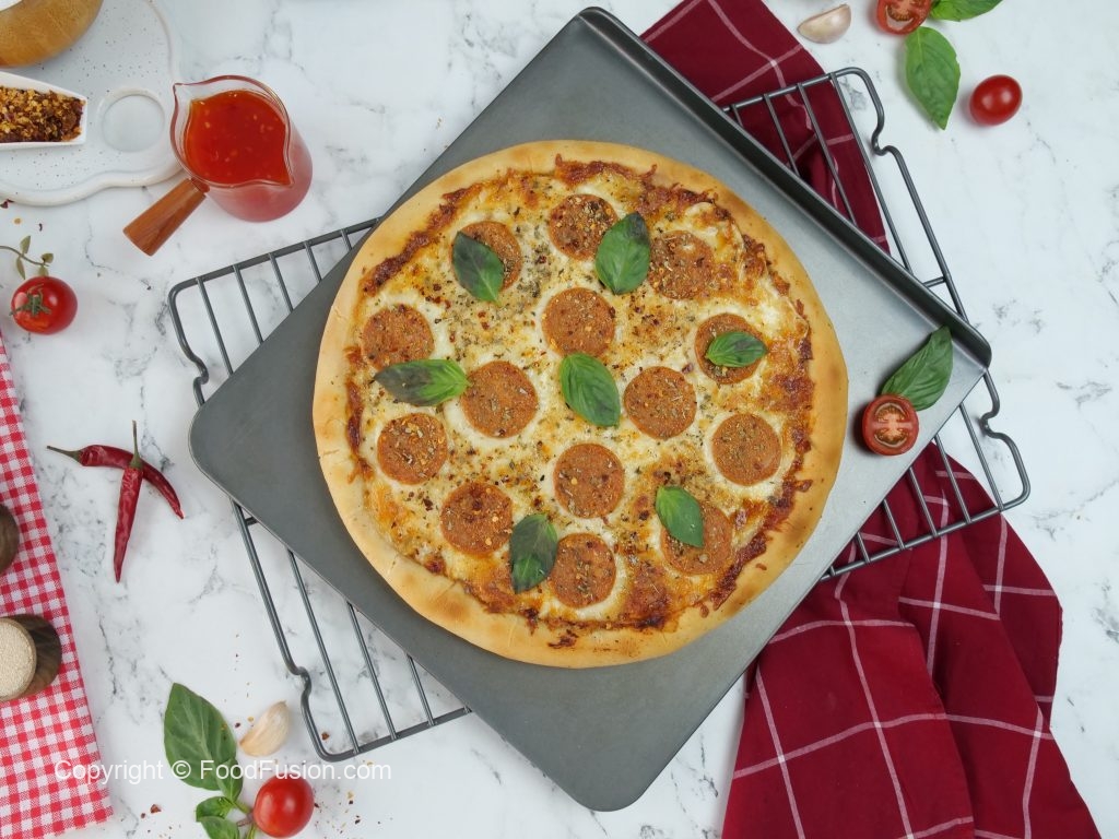 -Ab tayyar red sauce dal ker pheela lein,cheddar cheese,mozzarella cheese & chicken pepperoni dal dein.