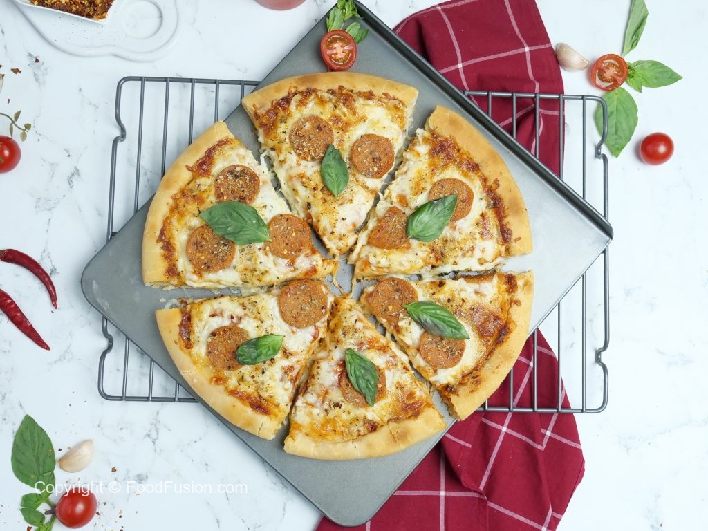 -Lal mirch crushed,lehsan powder aur dried oregano chirak dein aur sides ko cooking oil sa grease ker lein (makes 2).