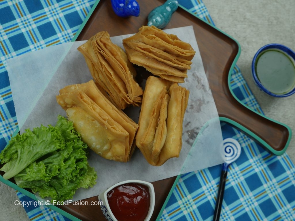 1 tbs tayyar aalo filling ko dough ka center mein dal dein aur pani laga ker dough ko fold ker lein aur edges ko press ker ka seal ker lein (makes 12).