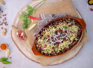 -In a serving dish,add cooked kalay chanay,chaat masala,fresh coriander,onion,prepared matar chewra & serve!