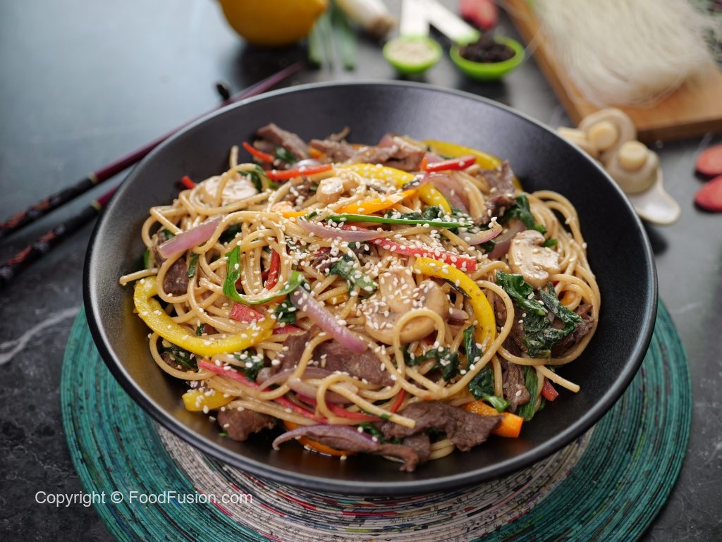 In a wok,add cooking oil,marinated beef,mix well & cook until tender (8-10 minutes) & set aside.