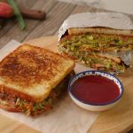 On griddle,apply butter,add vegetable & egg mixture,trying to make it as a square shape,cover and cook on low flame for 2-3 minutes then carefully flip the mixture and cook on low flame for a minute.