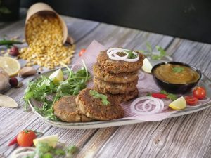 Wet hand with water,take a mixture (60g) & make kababs of equal sizes (makes 14-16).