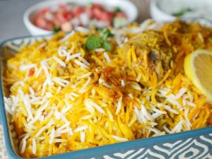 In a pot,add defrosted chicken biryani marinade (½ kg),mint leaves,fresh coriander,fried onion,boiled rice and ghee.