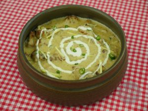 Add spiced yogurt,mix well,add ground cashews mixture and mix well.
