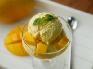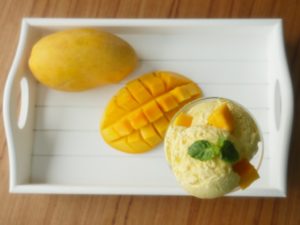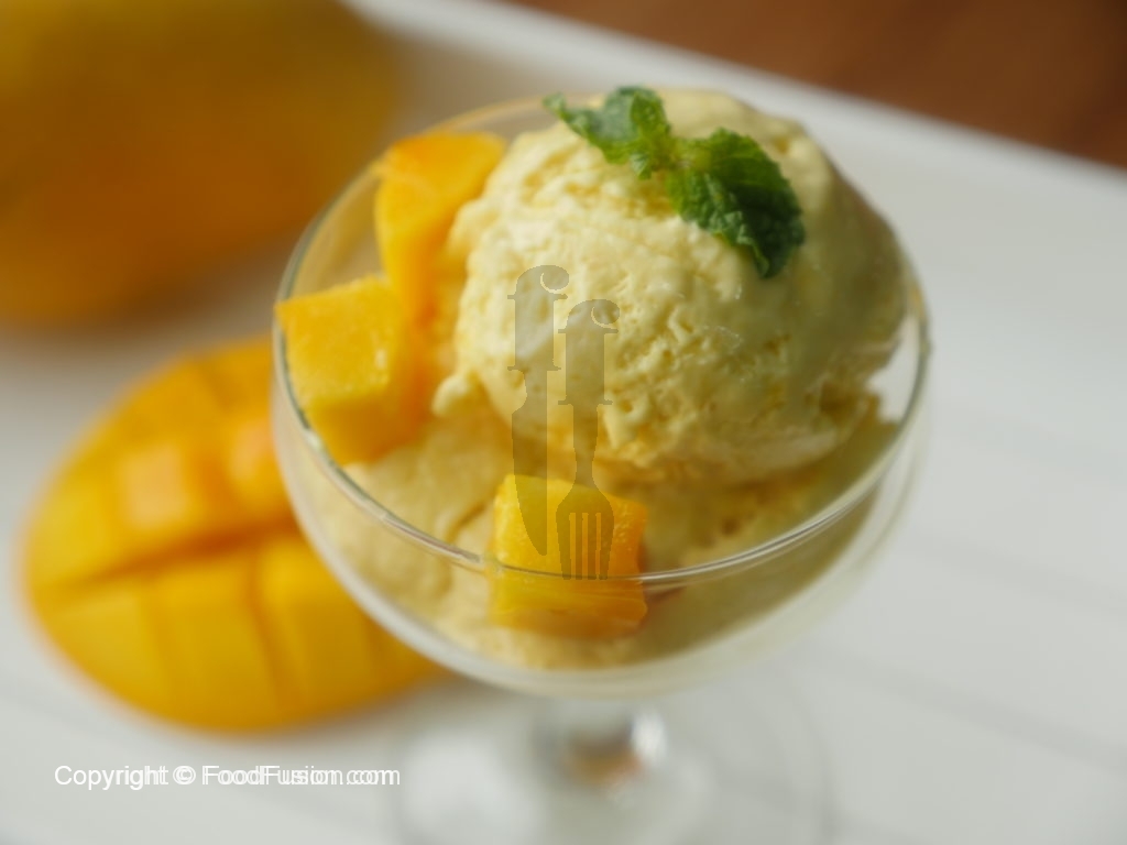 In blender,add mango cubes and blend until well combined to make a puree (approx. 2 Cups).