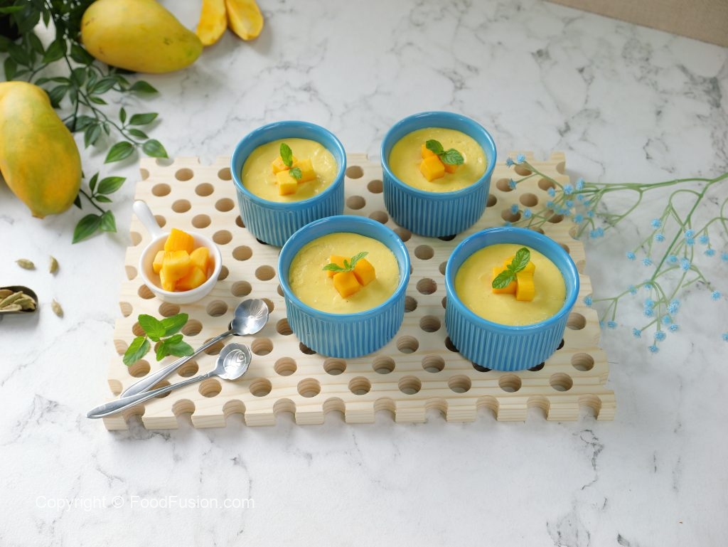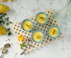 -Garnish with mango chunks,mint leaves & serve (makes 5-6).