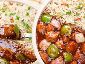 -In the same oil add strained potatoes, fry on high flame for 5-6 mins or until light golden, take out & set aside.