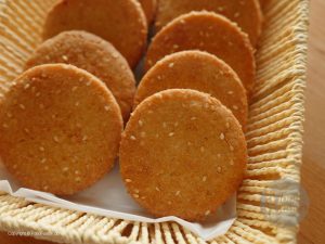 In bowl,add all-purpose flour,sesame seeds,desiccated coconut,semolina,cardamom powder and mix well.