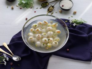 -On low flame,add mini rasgulla balls in sugar syrup & cook on medium flame without stirring for 3-4 minutes,cover & cook for 8-10 minutes or until double in size.