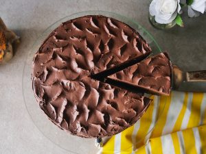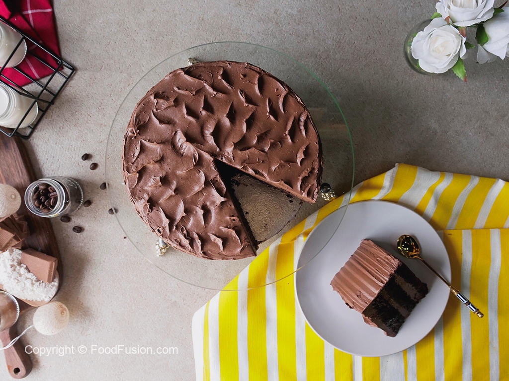 Now spread prepared chocolate frosting & repeat the same process for top layer of cake and cover the sides of the cake with frosting.