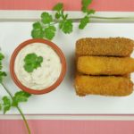 Mozzarella cheese sticks is ready,serve with sour cream dip.