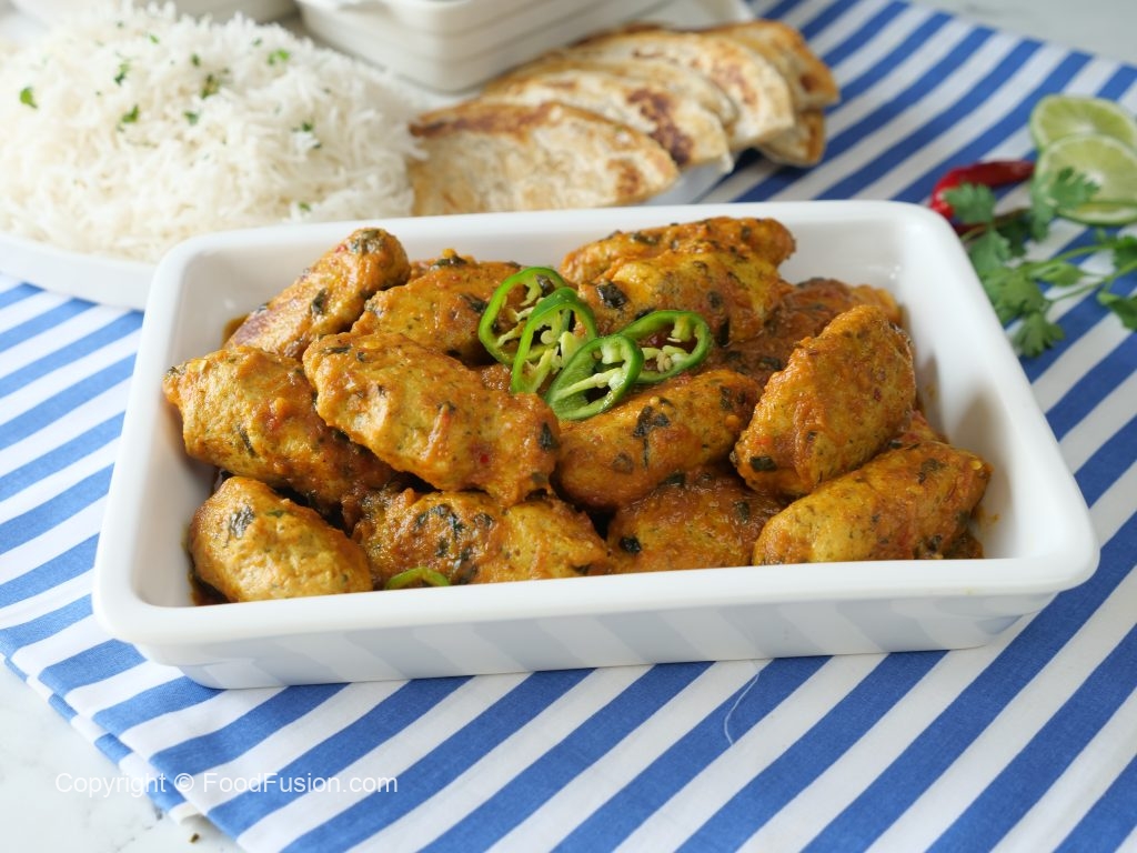 An amazing dawat platter – “Muthi Dum Kabab with Masala Stuffed Green Chilies”. #HappyCookingToYou #FoodFusion