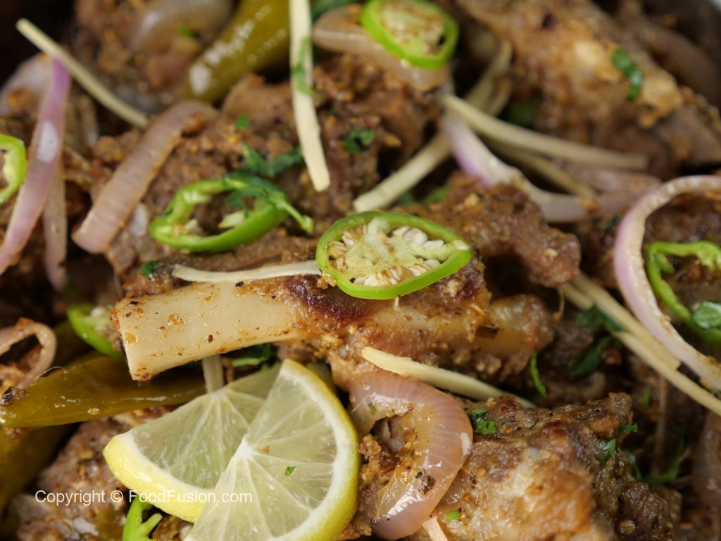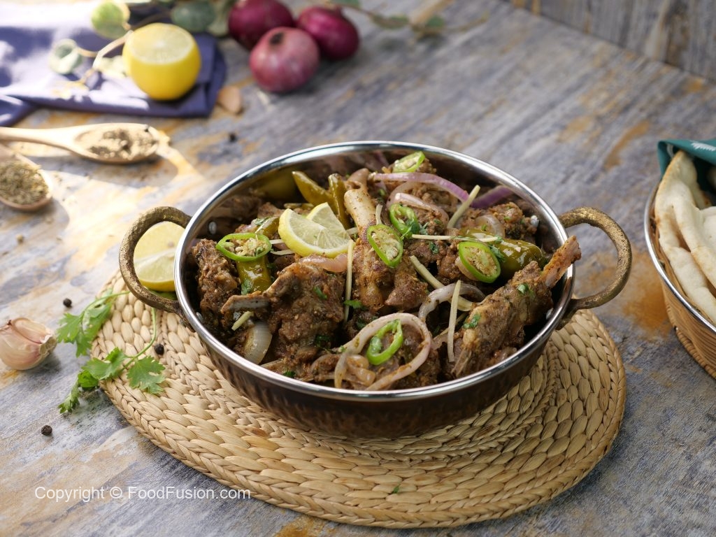 -Ab mutton ko karahi ki sides per ker dein aur center mein cooking oil,adrak lehsan paste aur hari mirch dal ker ache tarhan mix karein aur ek minute kliya sauté ker lein.