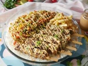 Garnish with lemon slices,green chilli,fresh coriander & onion rings.