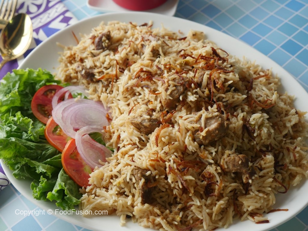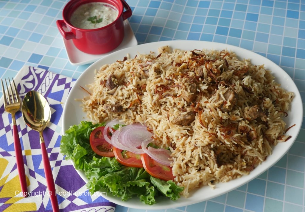 Now add cooked mutton,fried onion,cover and cook on low flame for 20 minutes.