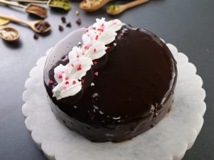 -Carefully remove cake from springform pan & pour prepared chocolate ganache.