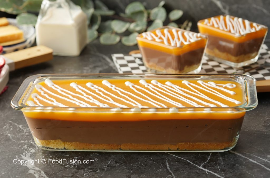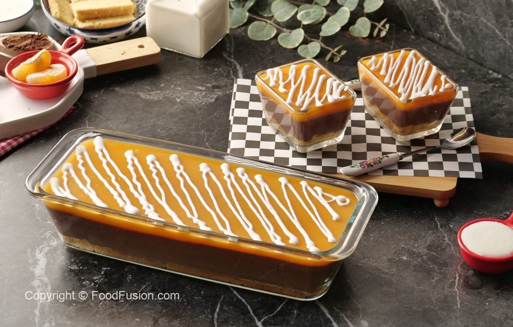 Pour gently prepared orange sauce on the back of spoon to make an even layer in the assembling dish & let it refrigerate until chilled.