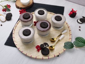 -Pipe out prepared Oreo cream,garnish with prepared ganache & Oreo biscuits.