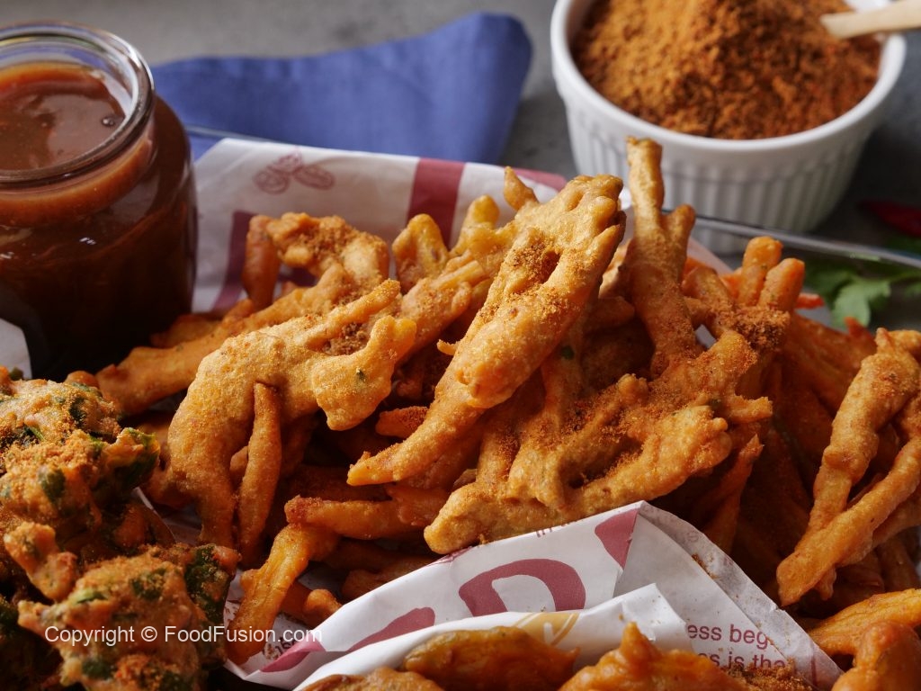 -Pakora platter per chatpatta magic masala sprinkle ker lein aur chutney or tomato ketchup ka saath serve karein!
