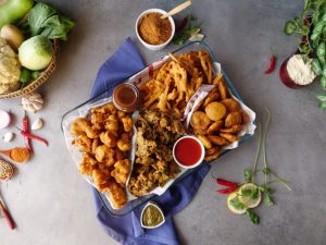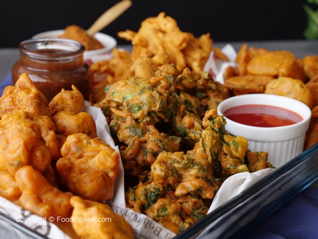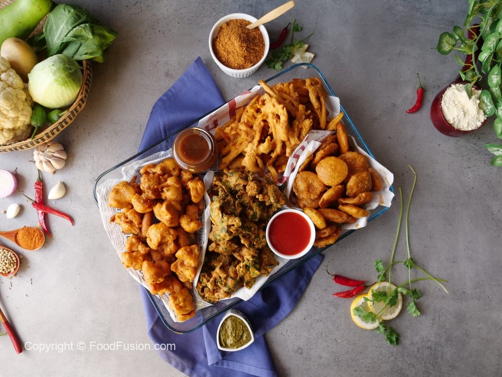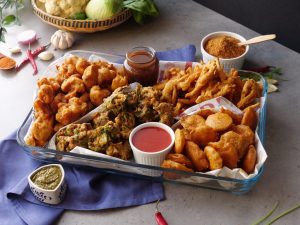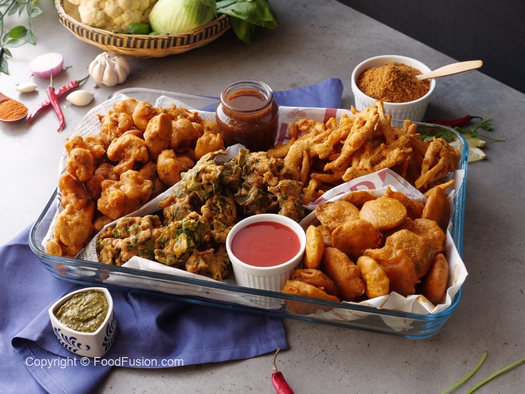 -Sprinkle chatpatta magic masala on pakora platter & serve with chutney or tomato ketchup!