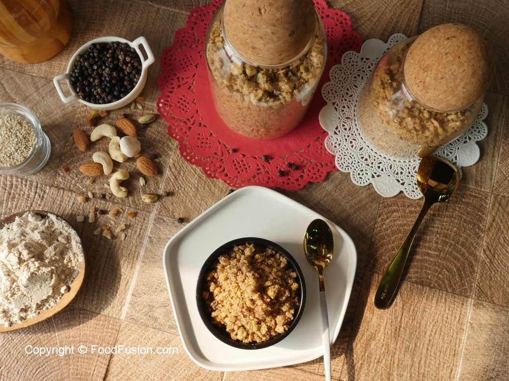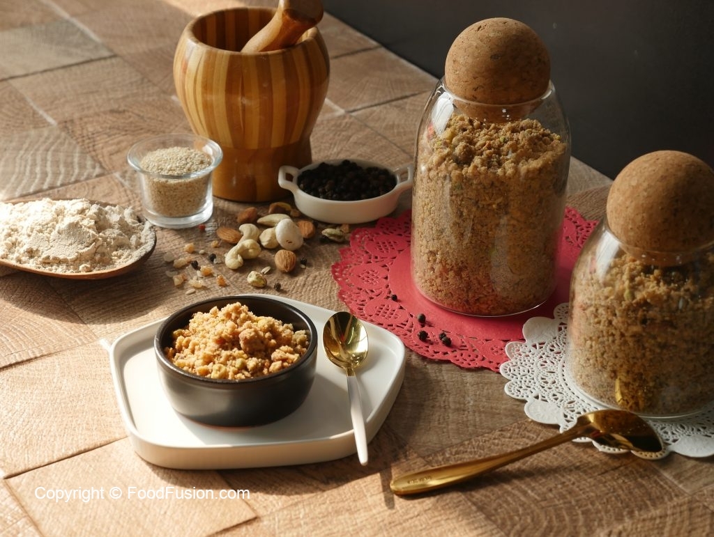 Sindhi Style Panjiri (Bhogaro) a recipe passed on to Food Fusion by Saima late grand mother. There are may recipes for it, this one is Sindhi style Panjiri called Bhogaro. #HappyCookingToYou #FoodFusion Panjiri is a nutritional supplement to nurish and stregnthen the body. Specially recommended for new mothers/nursing mothers and growing children. Consume 2-3 TBS at a time, overeating may lead to indigestion.