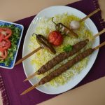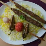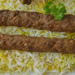 Serve saffron rice with kabab.