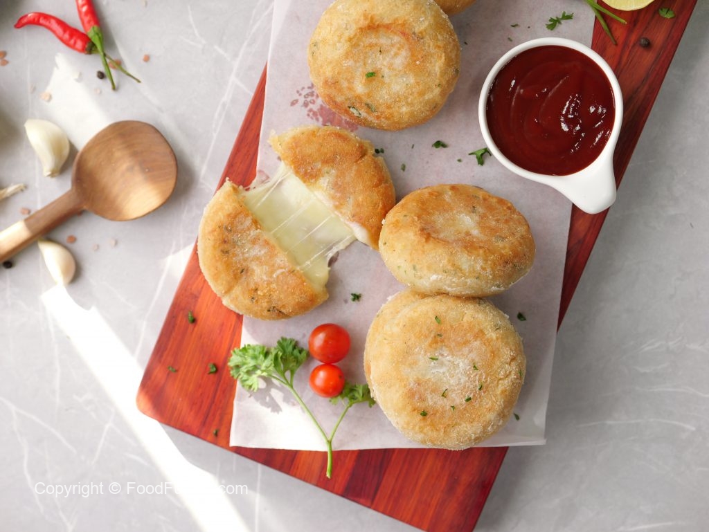 Golden potato patties stuffed with gooey cheese—crispy outside, melty inside. Perfect for a snack or side! These potato cheese cakes are little bites of happiness! #happycookingtoyou #foodfusion #araywahh #monthofgood