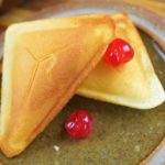 For sandwich cakes, grease sandwich maker, pour batter and give it 4-5 min.