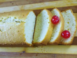 Make sure that a tooth pick inserted in the center comes out clean that is the sign of a fully baked cake.