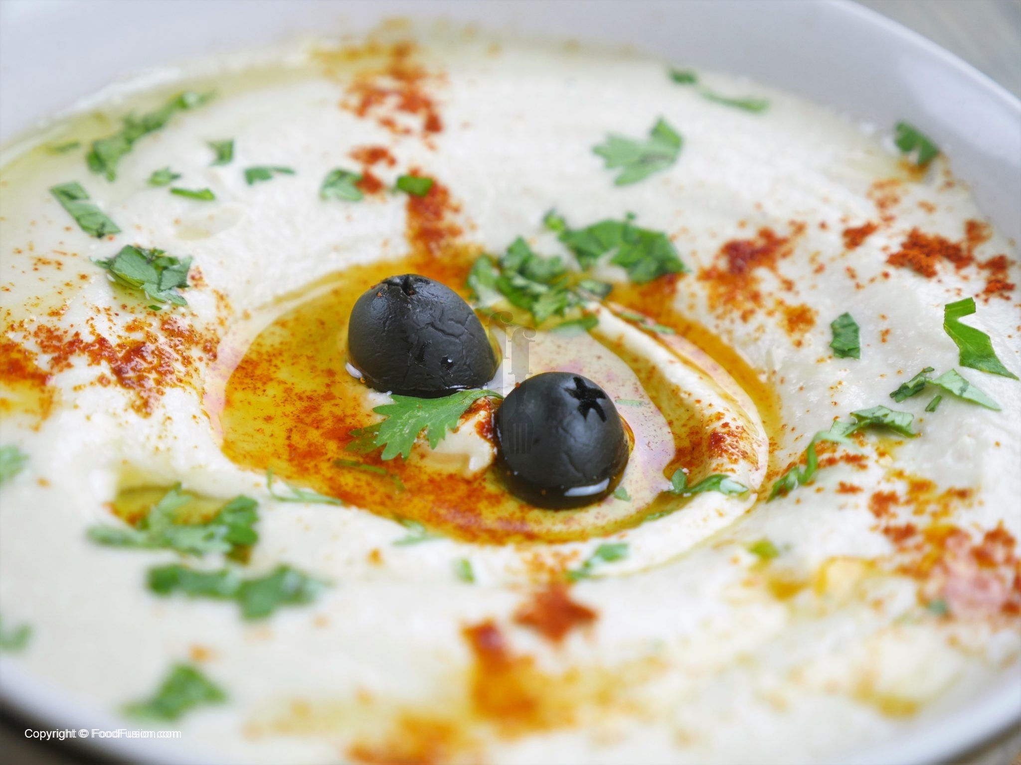 To prepare hummus, in tahini paste add hummus ingredients gradually and blend.