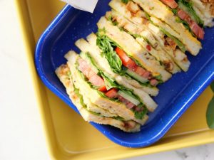 -Spread prepared spicy mayo sauce on another toasted bread slice & flip it on omelette then spread prepared spicy mayo sauce on top side of bread slice.
