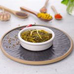 -In a jar, add boiled mustard leaves, green garlic, pink salt, red chilli powder, turmeric powder, mustard seeds, cover & shake until well combined.