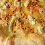 Prick with fork and add prepared white sauce and spread evenly.