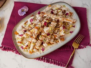 Dried rose petals sa garnish ker ka serve karein!