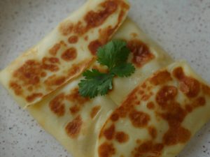 -Spread ghee on one of them and place the other on top of the one with ghee. Press with hand to make flat.