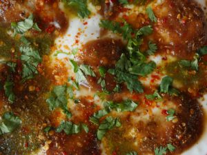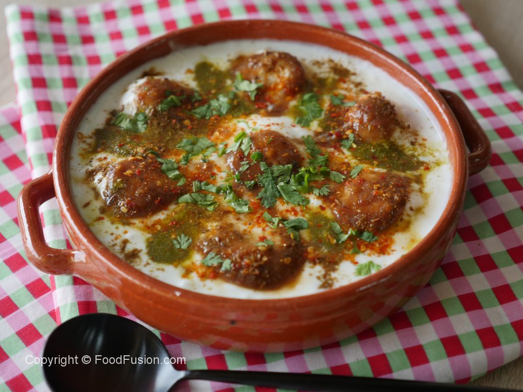 In serving dish,add steam dumplings,yogurt,date tamarind chutney,green chutney and sprinkle red chili crushed,cumin seeds,salt,fresh coriander & serve.