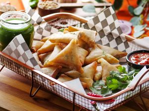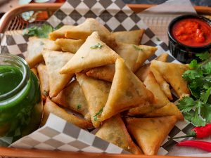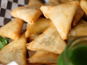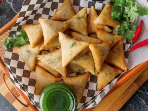 Brush mini samosa with oil & bake in preheated oven at 200C 20-25 minutes (flip in between once after 15 minutes).