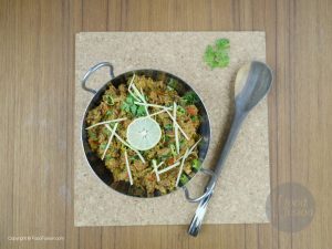 Stir occasionally and let it cook till the water remaining in the pan is 1 ½ cup.