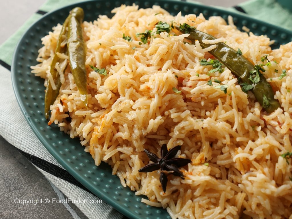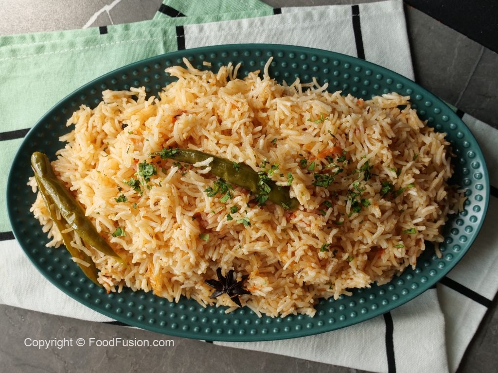 A quick and easy tomato rice recipe to bring a different feel to the rice you eat everyday. #HappyCookingToYou #FoodFusion #RamazanSpecial