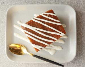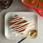 Slowly pour the milk mixture over the top of the cake,filling holes.